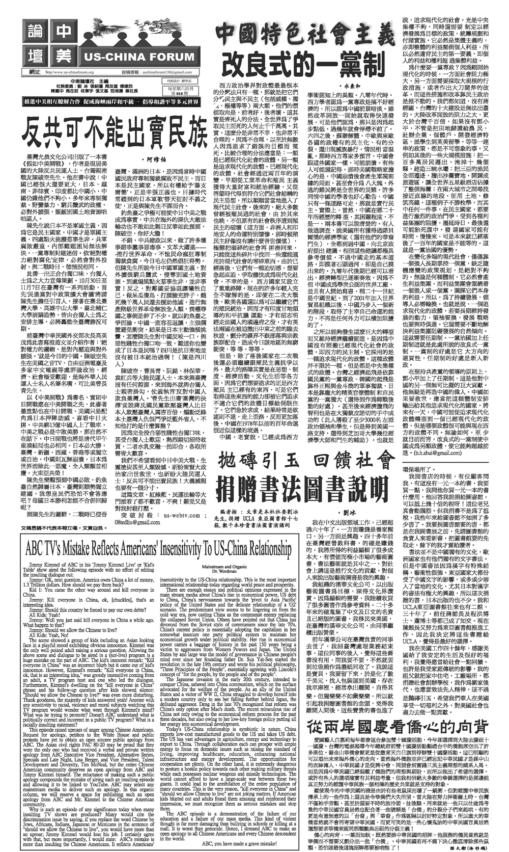 US-China Relationship US-China Forum, No. 13, 11-9-2013, Column: